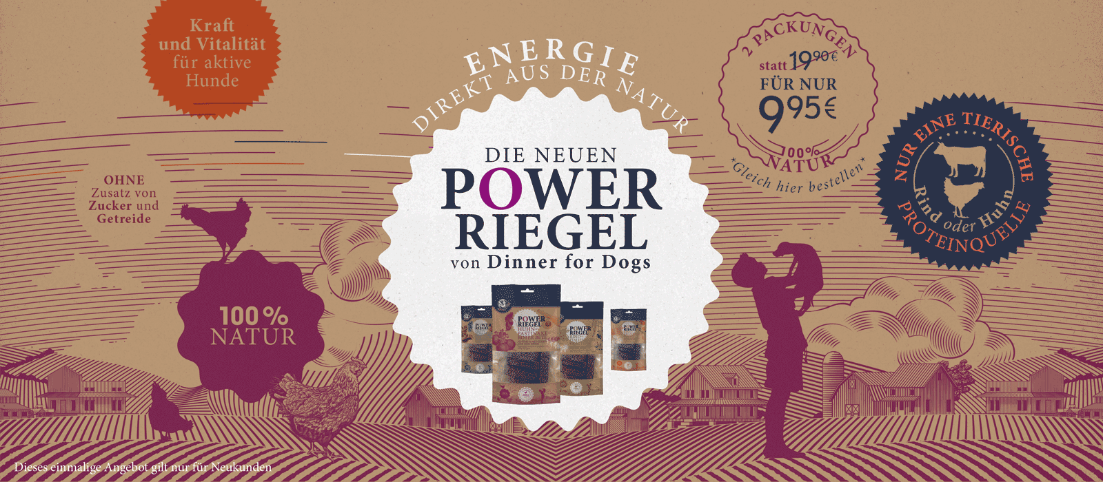 Sie haben die Auswahl - Ihr vierbeiniger Liebling wartet bereits auf unsere leckeren Powerriegel